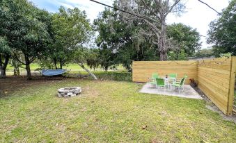 In addition to the bedrooms, the property also boasts a workspace that's perfect for remote workers or anyone who needs to get some work done during their stay. And when it's time to unwind, head outside to the spacious backyard, where you'll find a fire pit and plenty of outdoor seating.