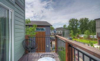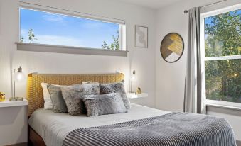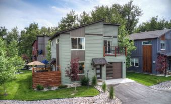 Nestled in the trees, Gallatin River Gem is situated within the Railway Lofts & Cottages community in Four Corners, set along the Gallatin River. This house is a great home base for scenic day trips.
