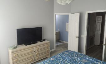 Our three-bedroom townhome (all with en-suite bathrooms) is fully air-conditioned, furnished, and equipped to give you all the benefits of home while on vacation. The primary bedroom has an adjustable king-size bed with a new (2023) memory foam mattress, the second bedroom has a queen-size pillow-top mattress, and the third bedroom has two twin beds with new (2023) memory foam mattresses. Linens and towels are provided. Each bedroom also has a TV. If you need to wash that favorite outfit, there is a full-sized clothes washer and dryer.