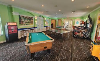 The Windsor Palms Resort offers a clubhouse and recreation center with a beautiful large heated communal saltwater swimming pool, whirlpool spa, movie theatre, and many sporting facilities, including tennis courts, basketball, sand volleyball, table tennis, and a fitness room. The use of all leisure facilities is free to resort guests. Equipment is available for a refundable deposit. A well-stocked sundries shop, Tiki bar, and business center can be found in the clubhouse. Wi-Fi internet access is available in the clubhouse area for a small fee. There are several championship golf courses a short drive from the resort.
