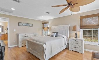 This beautiful custom home has a spacious layout for families or groups of friends, and takes in a breathtaking view of the Apalachicola Bay from inside and out of the home. The home has a modern kitchen with most accessories one would need to cook meals. A private master on the south side of the house with Large walk-in shower and private entrance. Then 3 additional bedrooms on the Northside of the home provide plenty of sleeping capacity and space for most families or groups.
