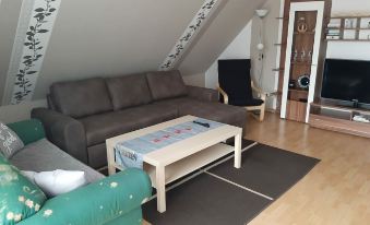 The apartment is located on the upper floor of a two-family house, in a very quiet, unique location, right by the forest. It is a non-smoking apartment. Dogs possible on request.