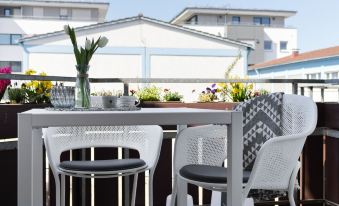 The nearest airport is Friedrichshafen Airport, located about about 10 mins from hotel by car (4.0 km) away.How do I get to Chic city apartment - city location - close to the lake + single garage from the nearest airport?