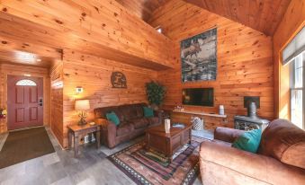 The Space: Step into the Moose Lodge, a rustic haven where every inch exudes Adirondack charm, enveloping you in the mountain oasis you've always envisioned. Crafted with knotty pine, this cabin boasts traditional Adirondack décor that transports you to a bygone era of cozy mountain getaways. The main living area, adorned with vaulted ceilings and expansive windows, bathes the space in natural light, while a versatile loft area awaits above, offering the perfect retreat for an additional bedroom, playroom, or tranquil workspace.