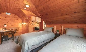 Our cabin accommodates up to 4 guests with one queen-size bed in a private bedrooms and two twin beds in the loft, ensuring everyone enjoys a comfortable night's rest. No need to debate over sleeping arrangements, as we've designed this space to cater to your comfort.