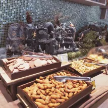 The breakfast was excellent and varied, with the kids loving French fries, barbecued sausages, and crab bread, as well as Northeastern-style pancakes and tofu pudding, and Western-style salads and toast.
