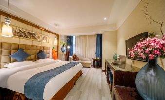Tianzhu Holiday Hotel in Fuyang falls on the bank of the beautiful Wenfeng Park. Open the window, you can see the beautiful Dongqing River with a deep blue lake. The hotel is adjacent to the commercial qinghe Square of the municipal government, with convenient transportation and convenient access to the surrounding snack street. Take a 10-minute taxi to fuyang's famous commercial street -- Shuangqingwan Wanda Plaza and Baolong Plaza, surrounded by upscale leisure places, business offices, entertainment and shopping.