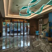 Staying at this hotel was such a pleasant surprise during our trip! The lady at the front desk has a super sweet smile, the room design is very stylish, and the panoramic floor-to-ceiling windows offer a panoramic view of the city night view. The smart toilet + smart customer control is so considerate, and the softness and hardness of the mattress perfectly saved my old waist! It is worth everyone's experience.