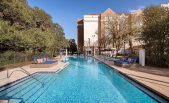 Hilton University of Florida Conference Center Gainesville hotel guests will enjoy a wide range of amenities, including internet access, complimentary 24-hour connectivity center, relaxing outdoor pool and spa, fitness center featuring Precor equipment, full-service restaurant Shula's Steakhouse and No Name Lounge.