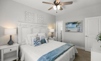 Sunset Kisses encompasses a variety of spaces to entertain friends, retreat to a private nook, or gather with family, all paramount to creating a pleasant beachside stay. Enjoy spectacular sunsets from one of the two balconies while taking in the sea breezes. The generously proportioned kitchen, dining, and living area is perfect for indulgent gatherings and comes equipped with Wi-Fi and a flat-screen TV for your added entertainment and convenience.