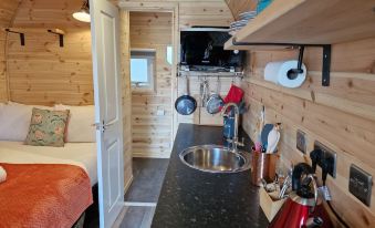 An open door will frame the rural scenery to perfection, outside there is private parking and a seating area with table, chairs and fire pit. There are birch trees and wild flowers and each pod is situated to provide some privacy for guests.