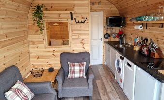 Sleeping 2 guests in each pod the comfortable pods are furnished with highland colours.