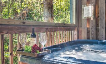 Gather at the dining table for six or enjoy meals on the covered deck's outdoor table. Start your day with coffee on the Adirondack chairs, thanks to our coffee bar stocked with a starter supply of coffee pods, creamers, and tea.