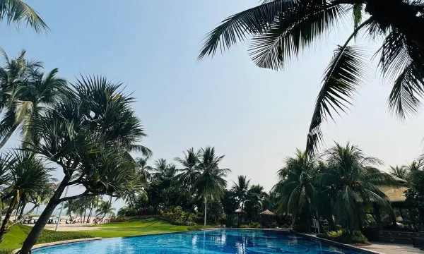 During your down time, go for a swim in the outdoor pool.