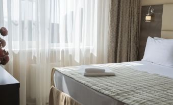 Guests can book rooms of the following categories: Standard, Family, Comfort and Suite. All of them are equipped with a wardrobe, air conditioning, TV, Wi-Fi, a work area with a safe, a refrigerator and a bathroom. Towels, slippers and toiletries are provided.