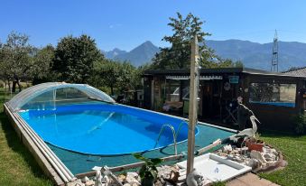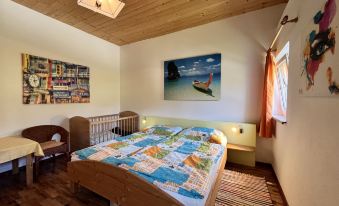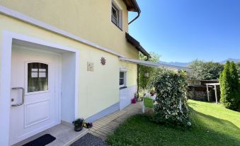 Lukowitz 11 km from Velden am Wörthersee: 2-family house "Landhaus Rosental", surrounded by meadows. 2 apartments in the property. In the district of Lukowitz, 9 km from the lake. For shared use: swimming pool (8 x 4 m, seasonal availability: 01.Jun. and 15.Sep.) with shutter cover. Private: beautiful garden to relax. Patio, garden furniture, barbecue, fireplace. In the house: WiFi, storage room for bicycles, storage room for skis. Parking at the house. Grocery 3.5 km, restaurant 3.5 km, bus stop 500 m, railway station "Klagenfurt" 22 km, bathing lake "Sankt Johanner Badesee" 9 km. Nearby attractions: Pyramidenkogel 19 km. Well-known ski regions can easily be reached: Gerlitzen (Kanzelbahn) 27 km. Well-known lakes can easily be reached: Wörther See 11 km. Hiking paths: Wanderweg Plätze der Kraft 1 km, Hochstuhl 16 km. On the estate animal husbandry. Please note: the owner has a dog. The pool (for shared use) is located on the landlord's neighboring property. In the summer months, the Wörthersee Card is included in the price. 4-room apartment 115 m2 on 1st floor. Living/sleeping room with sloping ceilings with 1 double sofabed, Scandinavian wood stove, dining nook and satellite TV (flat screen), heating stove. 3 double bedrooms with sloping ceilings. Open kitchen (oven, dishwasher, 4 ceramic glass hob hotplates, kettle, microwave, electric coffee machine). Shower, sep. WC. Wood heating. Parquet floors. Facilities: washing machine, children's high chair, baby cot, logs (free). Internet (WiFi, free). Please note: non-smokers only. Maximum 1 pet/ dog allowed.