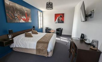 Stopped here with family on our way south and it was a great choice. The rooms are clean and comfortable, it has a bar and lovely restaurant and parking is very easy (and free). I have never seen anyone work as hard as the owner - but even though he is so busy he is still very welcoming and friendly. Dinner, bed and breakfast with drinks for a very reasonable price. A visit to the local pineau producer at Puy Gaudin is an added bonus. Don’t hesitate to stop here to refresh and reenergise before tackling the Bordeaux traffic or even for a longer stay.