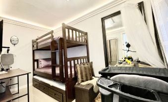 3 bedrooms: 3 bunk beds 2 sofa beds and 1 queen bed