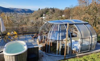 Superbe nuit dans la Big’Bulle ! La nourriture était très bonne (raclette + petit déjeuner). Personnel très accueillant et à l’écoute ! L’endroit est magique, reposant et au calme. Le bain nordique privatif de la bulle est vraiment super et nous pouvons en profiter au maximum ! Le domaine est très beau, je recommande vraiment cet endroit :)