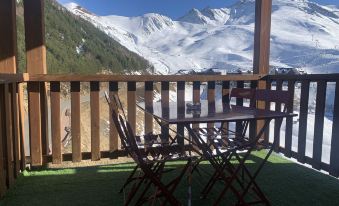 Appartement bien agencé, proche de la station à pied, et navette gratuite. 2 vrais chambres et un coin nuit, 2 salles de bain, idéal pour 2 familles. Vue magnifique sur les pistes. Belle terrasse ! Situé au dessus des commerces et de la boulangerie.