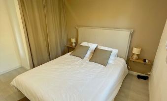 3 air-conditioned double bedrooms equipped with 160x200 beds, cupboards, connected TV including a parental suite of more than 20m² with bathroom including balneo bath, Italian shower, hair dryer and toilet opening directly onto the covered terrace and the swim spa (swimming pool )