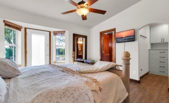 This adorable 3-bedroom retreat offers a queen Murphy bed, a Tempurpedic Queen in the second bedroom, and a king-sized purple mattress that is super comfortable in the primary.