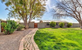 Our home is described as something out of a storybook. Large grassy lawn and big shade trees. It can seem out of place in Arizona. A cute private courtyard in the front is gated and the backyard is very open and large.