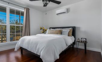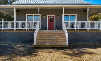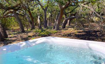 This gorgeous, newly built 1 bd/1 ba cottage with loft & private hot tub is nestled on 27 acres of privacy & seclusion! Escape to this romantic sanctuary with a modern French Country feel. Relax & have a glass of wine or coffee while you watch the wildlife from the rocking chairs on the front porch; enjoy a picnic or play bocce ball under the amazing old oak trees; & unwind in the serene quiet of the evening in in the hot tub or in front of a fire in the chiminea. Managed by the property manager