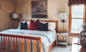 Downstairs you will find a cozy living room, and a sunroom, with farmhouse dining table, seating for 10. There's also a daybed in this room for 2 more guests.