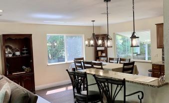 Designed with families in mind, the home offers 5 beds, including a bunk bed for the little ones, along with various toys, crafts, and a PlayStation for entertainment. Essential amenities like a pack and play, high chair, and a baby gate are also provided for infants' comfort and safety. Additionally, guests have access to a fully equipped kitchen, laundry facilities, a spacious backyard, and a range of extras for both indoor and outdoor enjoyment, including a massage chair for ultimate relaxation.