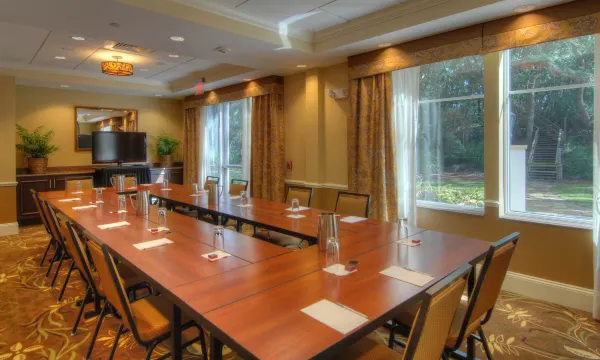 Looking for a great location for your next small meeting in Jekyll Island? Our Hampton Inn & Suites hotel offers approximately 460 square feet of flexible meeting space that accommodates up to 40 people theater style. The Hampton Inn and Suites also has Ocean Oaks Terrace which is our outdoor space that has tables and chairs for 24 people. Our Ocean Oaks Terrace can accommodate up to 65 people for a small wedding/reception/meal.