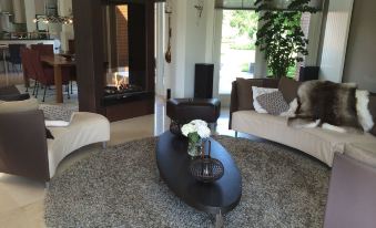 The villa has two spacious lounges, separated by a glass trendy fireplace, luxurious furnishings and a fully fitted kitchen, utility room, 2 bathrooms, 3 toilets.