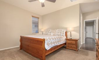 Welcome to our charming desert home in a quiet residential neighborhood of Estrella Mountain Ranch!  Relax and enjoy beautiful sunsets,  hiking and biking trails, a golf course, 2 lakes, 2 resort pools, lap pool, 2 gyms, pickleball, tennis and basketball courts and parks with playground equipment.   You’ll be just minutes away from Tres Rios Golf Course, Goodyear Spring baseball, Phoenix Raceway and State Farm Stadium, plus the entire Phoenix valley for restaurants, entertainment and shopping.