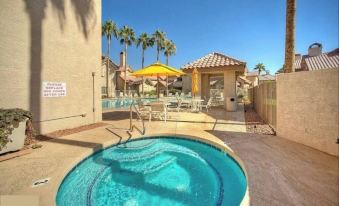 Welcome to the Pyramids at Palm Valley. A laid back, quiet, resort style stay. With garage parking, this 2 bed, 2 bath condo with washer/dryer within unit will serve as an ideal home base! The Pyramids are in a perfect central location. Spring training stadiums all within 10-15 min. Great dining, shopping, golf courses, and parks within walking distance. On top of that, this complex has an amazing heated pool, hot tub, tennis courts, and a gym.About pets:Pets allowed: dogs less than 50 lbs per pet (limit one pet total).About checkOut:Check out before 11:00 AM.About children:Children allowed: ages 0-17.About checkIn:Check in after 4:00 PM.About smoking:Smoking is not permitted.About minBookingAge:Minimum age to rent: 25.About events:No events allowed.