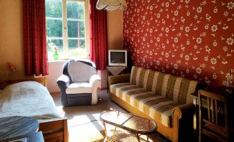 The manor house is located in a child-friendly and very quiet environment. Children can experience a lot on the huge property. We have various pets such as goats, cats, dogs, horses as well as cows, geese, ducks, turkeys and pheasants. It is also possible to bring your pet during your holiday. Just ask at the time of booking.