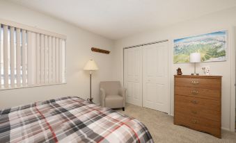 The 1 bedroom condominium with 607 square feet, is situated on the ground floor of the building, offering convenient access to the main clubhouse located just across the parking lot, as well as the free town shuttle stop.