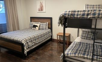4 bedrooms: 2 bunk beds 3 queen beds and 1 king bed