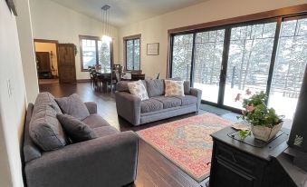 Huge Kitchen with 2 side by side 6 burner stoves. Plenty of room for all to prepare and cook. Well stocked. Short drive to Discovery Ski area. Comfortable beds. Hot tub was hot! Plenty of towels. Dining area had 2 tables. Perfect kids table. Large mud room at the entry. HUGE disappointment: the wood burning stove was out of order. It is currently being used as a plant holder. Only one thermostat on the upstairs level. It was minus -12 degrees. To heat the downstairs we had to close the upstairs vents, thus making it cold upstairs. Needs a coffee table and end tables in seating area. No place to rest your hot cocoa or glass of wine while not drinking. But, having said this, I would definitely rent this house again. (Provided the owners fix the Wood burning stove).