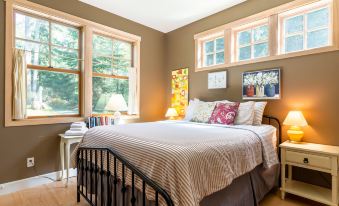 Enjoy modern amenities that enhance your stay. Stay connected with the provided Wi-Fi hotspot, take advantage of the washer and dryer, and find convenience in the iron and blow dryer. The convection oven and microwave offer versatility for your cooking needs, while the stereo and TV with a DVD player (no cable) provide entertainment options. Dive into a captivating book, challenge your loved ones to a game, or engage in friendly competitions with the badminton and croquet sets.