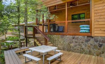 Riverfront 3BR Cabin minutes to Table Rock. Fire pit, hot tub, and game room.