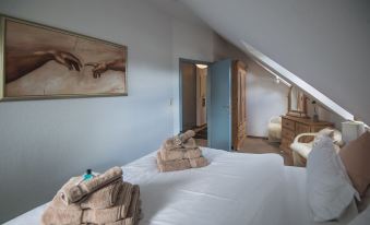 The next morning you will receive a rest in our shower room with floor-to-ceiling entry and a rain shower. A towel warmer ensures comfortably warm towels in luxury quality. Thanks to the integrated roof window, this extraordinary shower offers you a lot of space.