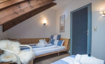 In the second bedroom, equipped with a wide single bed (1.20 m) and a normal single bed (width 90 cm), XXL blankets and two different pillow sizes made from Tencel natural fiber are also available. Here too, a cabinet made by a carpenter completes the picture.