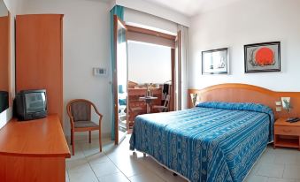 Hotel a due passi dal mare, zona un poco fuori dal centro, che rimane facilmente raggiungibile a piedi. Abbiamo soggiornato per 10 giorni: camera non grandissima (parte laterale, non fronte mare) ma dotata di un piccolo balcone dove è possibile stendere. Bagno cieco ma sia l'arredo che - soprattutto - il letto sono di ottima qualità (mai dormito così bene in un hotel). La colazione a buffet si svolge in una sala al primo piano: molto buona e con notevole varietà. Pranzo e cena invece si svolgono in una diversa sala al piano terra. Tutto sommato cibo buono (a parte qualche piccola stonatura saltuaria) e porzioni giuste. Il servizio in sala è ottimo, personale sempre cortese e attento al cliente, così come la pulizia stanze che è sempre stato di ottimo livello. La gentilezza di tutto il team (ho avuto modo di conoscere e scambiare una piacevole chiacchierata anche con il proprietario, che confermo essere un signore simpaticissimo!) è in ultimo un dettaglio che voglio rimarcare.