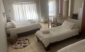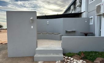 We stayed 1 night returning from SA and it was such a welcome place, aircon in room, fully equiped kitchen and bathroom, very clean and a cool swimming pool. The hosts are very friendly and attend to any question. The receptionist/cook was also very friendly and the cooked meal we booked in advance was prepared by her. The food was exceptional and more than enough for all the guests. I would recommend a stay for longer than a day, as there are lovely campsites and braai areas for most units, with parking in front and behind the main building.