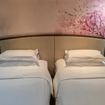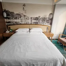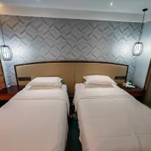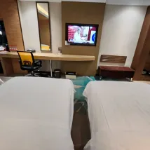 Upon entering the room, I was impressed by its spaciousness. The air conditioning was powerful and cool, the layout was well-designed, and the facilities were well-equipped. The ambiance was lovely and pleasant, and the beds were soft and clean, ensuring a restful sleep. They even provided extra bottles of water. The hotel is centrally located, yet surprisingly quiet. All rooms have large windows and no strange odors.
