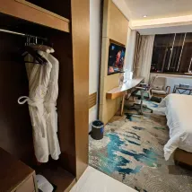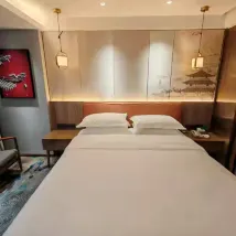 Upon entering the room, I found it to be very clean and well-maintained. The bed was exceptionally comfortable, and the room had excellent natural light. The TV screen was large with high clarity, and the blackout curtains were effective. Every detail reflected their commitment to quality and guest comfort. What's more, they consistently anticipated our needs and prepared in advance, whether it was replenishing toiletries or adjusting the room temperature, making us feel the warmth and convenience of being at home.