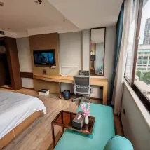 Overall, I had a highly satisfying stay and experienced five-star service from check-in to check-out. The hotel boasts an excellent location, directly opposite the Zhongshan Ophthalmic Center, reachable in just a 3-minute walk. The surrounding area is vibrant, featuring numerous commercial centers and attractions. A subway station right next door makes getting around incredibly convenient. The front desk staff were exceptional – professional, thoughtful, and with a truly customer-centric approach. I absolutely loved the room I was assigned. It was brightly lit with natural light thanks to its windows, and featured a large, high-definition TV. The in-room Wi-Fi was super fast, ensuring no lag whether I was streaming videos or working. Even with the intense sunshine these past few days, the room's powerful air conditioning kept me perfectly cool. The hotel's 11th floor offers buffet breakfast, lunch, and dinner. The ingredients were always fresh, hygienic, and delicious, making it incredibly convenient to dine indoors, especially on hot days, without needing to venture out. The front desk in the lobby also provides complimentary luggage storage. What really stood out were the thoughtful little extras, such as complimentary tea (a staff member promptly offered tea upon check-in, which was a lovely gesture), brown sugar sachets, makeup remover wipes, and masks. These details made me feel incredibly secure and at ease, contributing to a truly comfortable and trustworthy experience. Highly recommended!