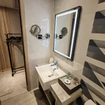 Service is also excellent. Upon arrival, we were immediately greeted with a welcome tea for each person – a truly thoughtful touch. I was particularly impressed by the warm and attentive service from the front desk staff. Check-in was efficient, and the room assigned to us was perfect – spacious, bright, and uniquely designed, making for a very comfortable stay.