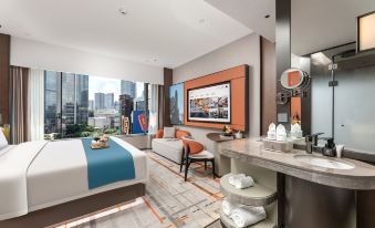 From.K Huankai Hotel (Guangzhou Tianhe Book Purchase Center Branch) is an upgraded version of Huankai Brand 2.0 under Guangzhou Zhongbo Hotel Management Co., Ltd., adhering to the life concept of "starting for a better life · exploring the new experience of urban book travel". The hotel has the core positioning: CBD heart collection book fragrance, travel new species, located on the seventh and ninth floors of Guangzhou Tianhe Book Purchasing Center, No. 123 Tianhe Road, Tianhe District, Guangzhou. It is the first design hotel in China to coexist with the urban book purchasing center. It is close to Guangzhou Sports Center and Taikoo Hui, and has an ultra-high travel mode, three Line subway hub, 30-minute direct access to the airport/high-speed rail station, and a 5-minute walk to Tianhe City, Fashion Tianhe, Zhengjia Square and other large shopping malls and business areas. The hotel is equipped with washing, ironing and drying self-service laundry, gym, buffet breakfast hall, cafe, etc. The guest room is equipped with all-cotton and comfortable bedding, independent refrigerator, intelligent guest control, independent air conditioning, oversized makeup mirror, high-speed Internet, and is committed to providing travelers with a satisfactory accommodation experience. The hotel has 76 smart rooms, including spacious and bright luxury double rooms, unique city view garden double rooms, etc., and a variety of intelligent room types can be Choose to meet your different accommodation needs.