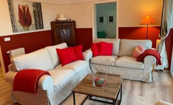 Romatic apartment in the countryside with loggia, sauna area, garden, pond, horses